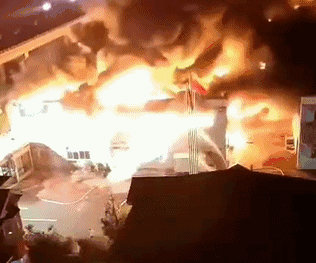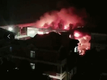 5月14日晚11時許,多名網(wǎng)友發(fā)視頻爆料,麗水青田縣溫溪鎮(zhèn)一處建筑發(fā)生大火。從網(wǎng)友發(fā)來的視頻看,火勢極其猛烈。從高處往火災(zāi)點觀看,燃燒沖起來的熊熊火焰,將黑夜照得通紅。